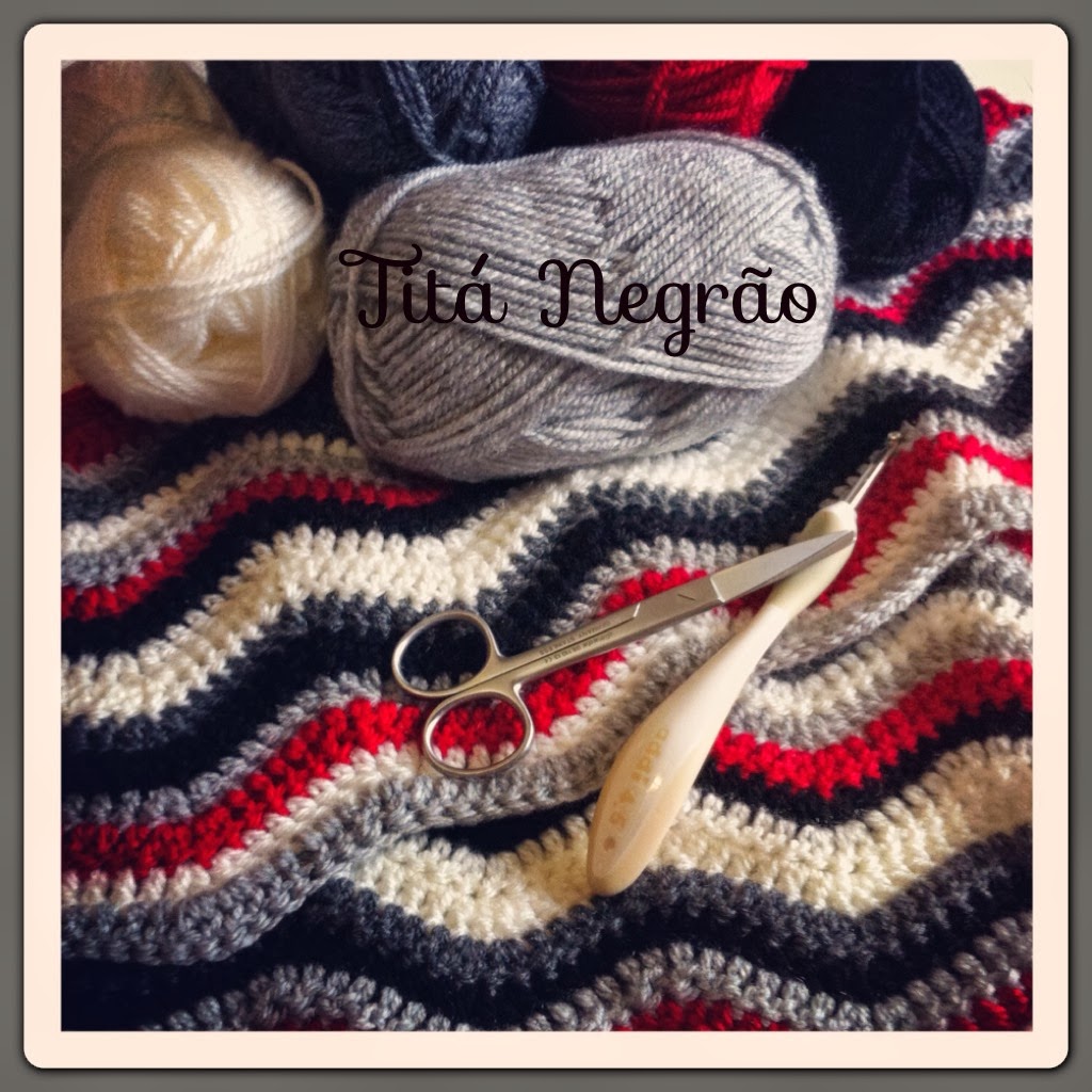 Faltava apenas o meu ripple, aqui está ele!!! Atentamente assistido por 'filho mais velho, mais lindo do mundo', que vai dando 'bitáites' na ordem das cores, já que a manta cresce segundo o que me passar pela cabeça...